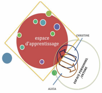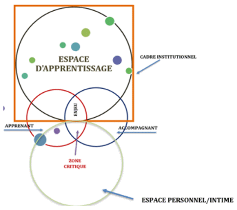 Dans cette zone, l’espace intime de l’apprenant ou/et de l’accompagnant peut s’inviter ; il peut alors y avoir une perte de contrôle dans l’accompagnement pédagogique et la situation peut « échapper » alors au cadre institutionnel.