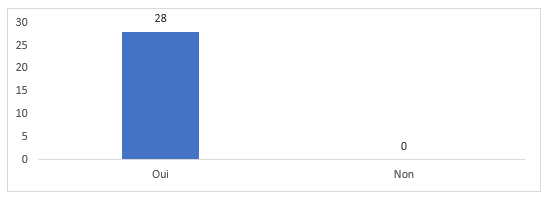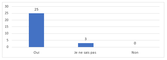 En effet, une grande majorité (23/28) de répondant.es ont le sentiment d’avoir contribué, par leurs interventions, à l’analyse d’une situation proposée par un pair. (Cf. Graphique 6 ci-après) :